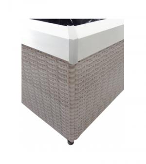 Het gevlochten kunststof, ook wel wicker genoemd, dat om de bak heen zit is onderhoudsvrij en weerbestendig, het materiaal is daardoor ideaal voor buitengebruik. Met deze terrasvijver bent u jarenlang voorzien van een moderne accessoire op het terras!