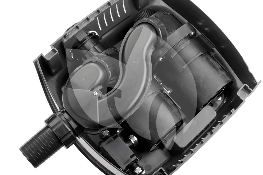 Bijzonder sterke filterpomp met individueel regelbare transportcapaciteit van de 2 motoren d.m.v. een afstandsbediening