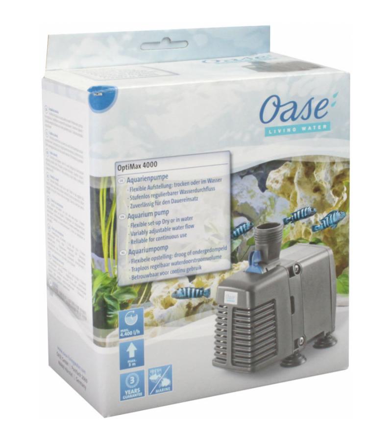 Voor zoet én zoutwater aquariums is er de OptiMax aquarium pomp 4000. Deze aquariumpomp zorgt voor een constante watercirculatie waardoor het leefklimaat in uw aquarium optimaal blijft. De aquarium pompen uit de OptiMax serie voldoen allen aan de eisen die aan een modern aquariumpomp worden gesteld. Ten eerste zijn zij perfect voor optimale watercirculatie en – transport en daarnaast zijn zij met de compacte grootte in ieder aquarium te plaatsen. De OptiMax aquarium pomp 4000 is robuust en heeft een lange levensduur.