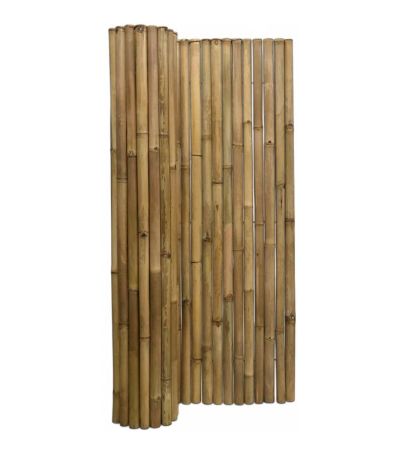 Een bamboemat is een eenvoudige oplossing om een bestaande schutting of muur sfeervol weg te werken. Door de natuurlijke uitstraling van bamboe is het een zeer geliefd product voor toepassingen in de tuin. Deze bamboemat met brede bamboestokken heeft een stoer karakter. De naturel kleur van het bamboe is afgewerkt met blanke lak. Op meerdere plaatsen worden de bamboestokken aan elkaar verbonden doormiddel van gegalvaniseerd staaldraad. Hierdoor is de bamboemat zowel in lengte als breedte naar eigen inzicht in te korten. Daarnaast is de bamboemat in verschillende afmetingen verkrijgbaar. Verfraai uw bestaande schutting met deze robuuste bamboemat!