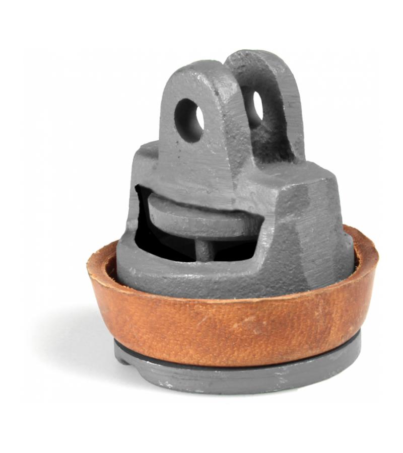 De complete zuiger heeft een diameter van 7,8 centimeter en een hoogte van 8,5 centimeter en is voorzien van de leren zuiger om het ijzer heen.