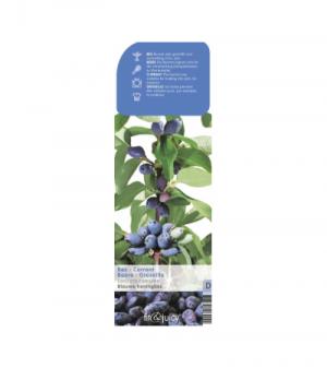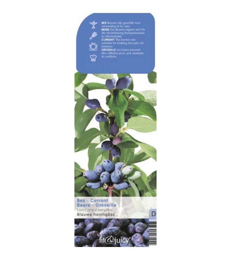 De blauwe honingbes, ook wel bekend als de Siberische honingbes, krijgt opvallende ovaalvormige bessen. De bessen zijn rijk aan vitamine B en C en zijn fris zoetzuur van smaak. De blauwe honingbes is zelfbestuivend. Wanneer u er meerdere plant zal dit van positieve invloed zijn op de opbrengst. De plant wordt tot ongeveer 1,5m hoog en daarmee ook zeer geschikt als vruchtdragende haag.