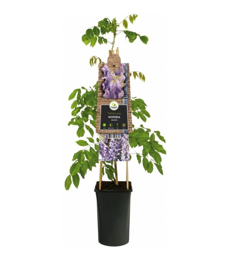 De Blauwe Regen Wisteria Sinensis is een sfeervolle klimplant die uitbundig bloeit vanaf het voorjaar. Bij het plaatsen van deze klimplant is het belangrijk dat de plant een stevige achtergrond heeft en dat de plant in op een zonnige tot halfschaduw staat. De plant krijgt lange bloementrossen die niet alleen super mooi zijn, maar ook een heerlijke geur hebben.
