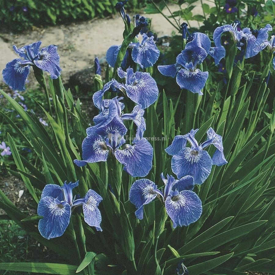 De blauw/paarse bloemen van de borstelige iris hebben een prachtige witte tekening rond het hart. Deze waterplant is een ware streling voor het oog. Hoewel de plant het in halfschaduw ook prima doet, gaat de voorkeur uit naar een zonnige standplaats wat ook de bloei uitbundiger zal maken. Omdat de iris houdt van een vochtige grond, is hij ook met de wortels in het water te plaatsen. Hierdoor kunt u eenvoudig een vijverrand perfect camoufleren en heeft u direct een kleurenpracht rondom uw vijver in mei en juni. De iris laat zich prima combineren met andere tuin- en waterplanten.