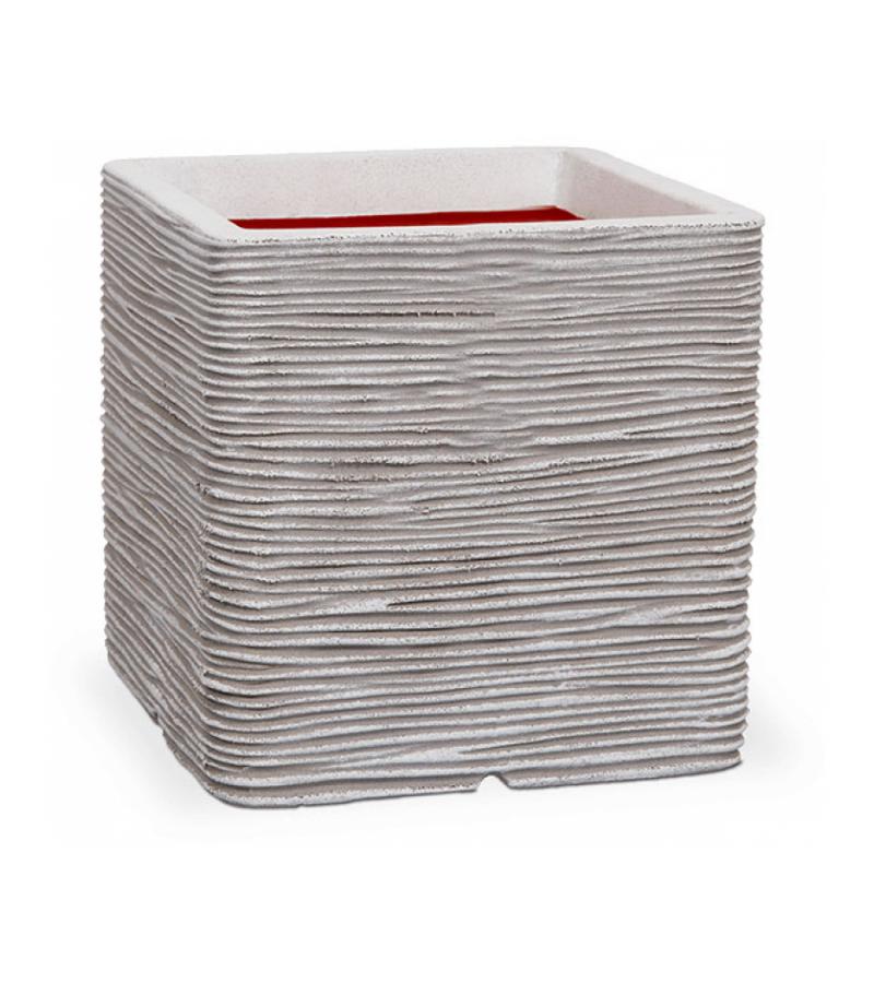 Capi Nature Rib NL 41x41x41cm vierkante plantenbak ivoor
