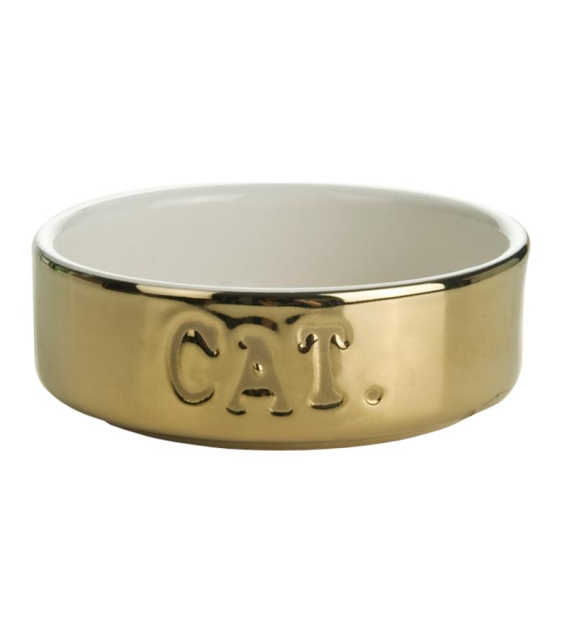 Een modieuze keramieke ronde eet of drinkbak, welke zeker opvallend is door de goudkleur.