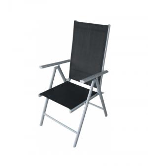 Het set bestaat uit 4 klapfauteuils met handige armleuningen, die zijn voorzien van een zwarte stoffen bekleding. Het onderstel van deze fauteuils is vervaardigd uit robuust en duurzaam grijs aluminium, en de rugleuning is in 7 verschillende standen verstelbaar. Daarnaast is er een tafel met een afmeting van 125x70cm meegeleverd, die is gemaakt van sterk en weerbestendig polywood.