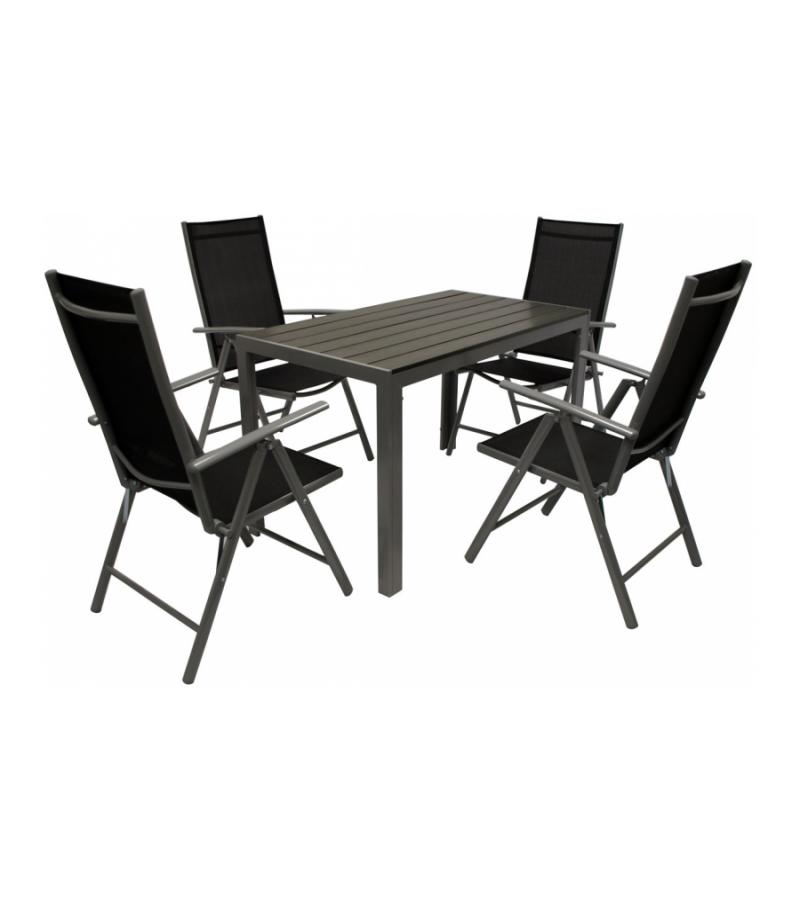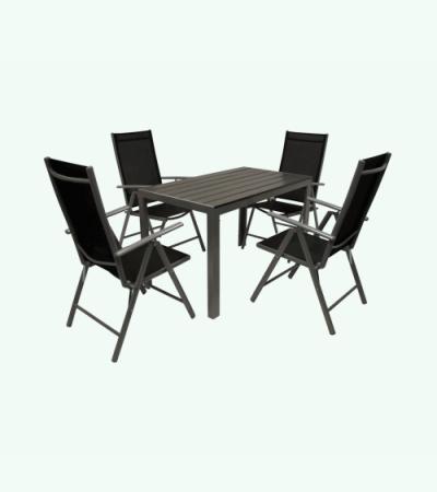 Set van 5, aluminium, polywood, kunststof stof zwart