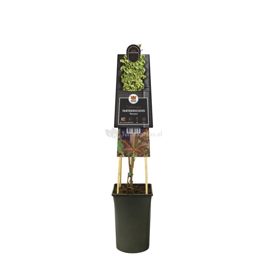 Deze Chinese wilde wingerd is de kleurigste klimplant uit de wilde wingerd familie. Het handvormige groene blad heeft een zilverkleurige nerf en kleurt prachtig rood in het najaar. Deze klimplant is een minder harde groeier dan zijn soortgenoten en bereikt 'slechts' een uiteindelijke hoogte van 4m. De plant zet zich vast met zuignapjes welke zich zelfs op gladde oppervlaktes kunnen vastzetten! Let op; houtwerk kan worden aangetast door deze zelfhechtende zuignapjes. Een prachtige plant om uw geven te sieren!