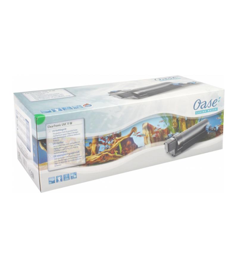 De ClearTronic is 100% VDE getest en geeft geen beschadiging aan de ogen. Het zuiveringsapparaat wordt geleverd inclusief de hoogwaardige UVC lamp en alle toebehoren die nodig zijn voor de aansluiting. De ClearTronic is plaatsbesparend en eenvoudig weg te werken in het aquarium. De ClearTronic 11W is geschikt voor aquariums met een inhoud tot maximaal 600 liter.