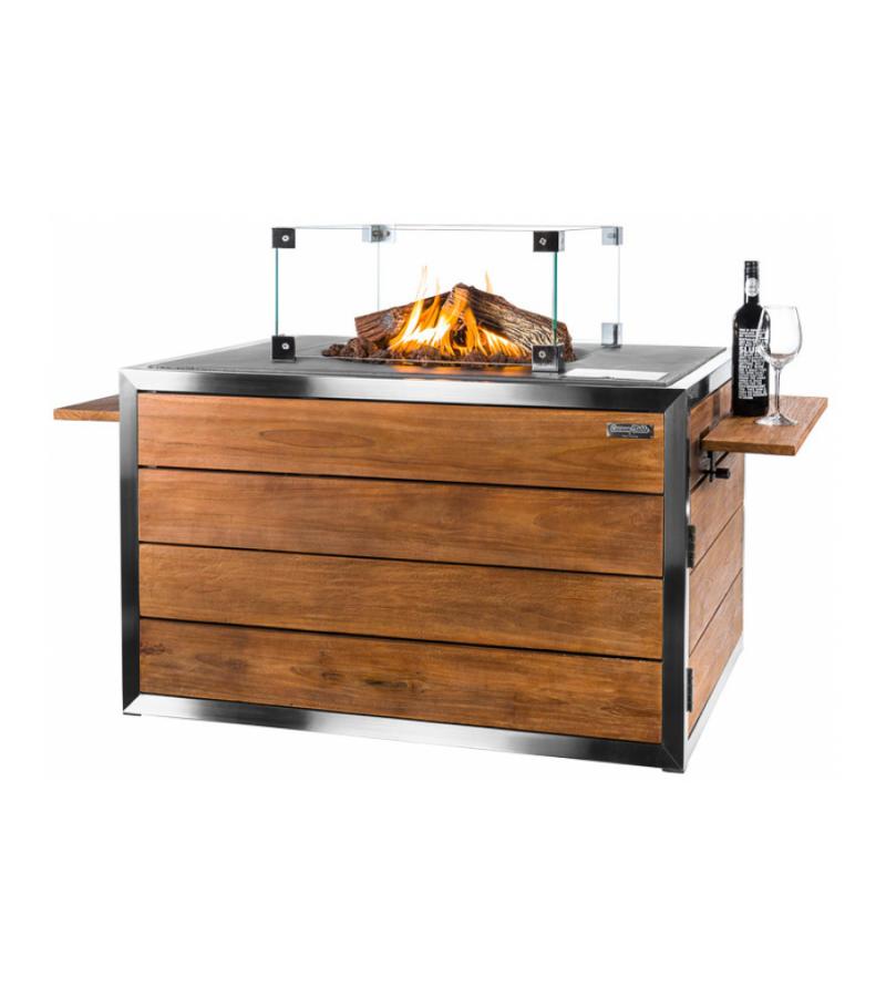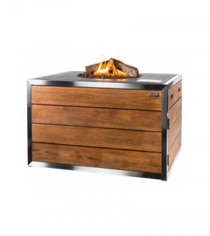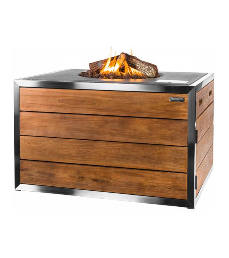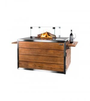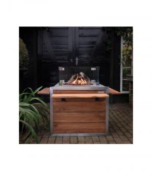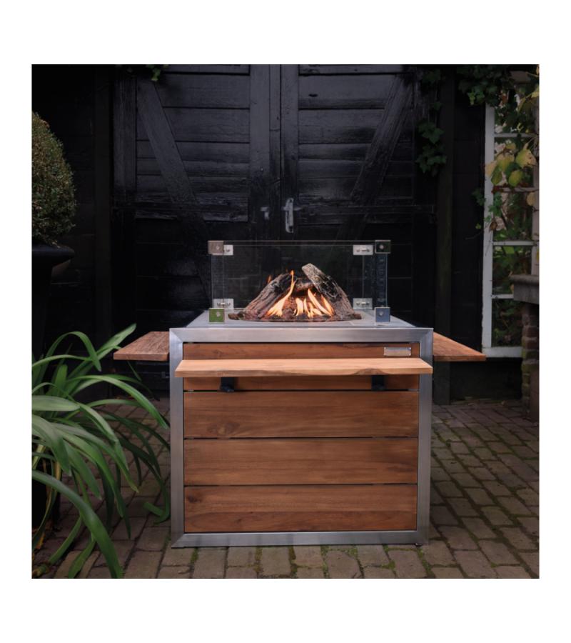 Het vuur van de buitenhaard wordt gevoed door een ingebouwde gashaard met een RVS-brander van 19.5 kW. De brander is mooi gecamoufleerd met optische lavastenen en houtblokken. Door middel van de elektronische ontsteking is de haard gemakkelijk te ontsteken. De hoogte van de vlam kunt u afstellen door middel van een draaiknop in het bedieningspaneel. De elektronische ontsteking met thermokoppel heeft een veiligheidsontwerp dat CE goedgekeurd is. Het vuur geeft geen rook of vonken af waardoor de vuurtafel zeer gebruiksvriendelijk en veilig in gebruik is.