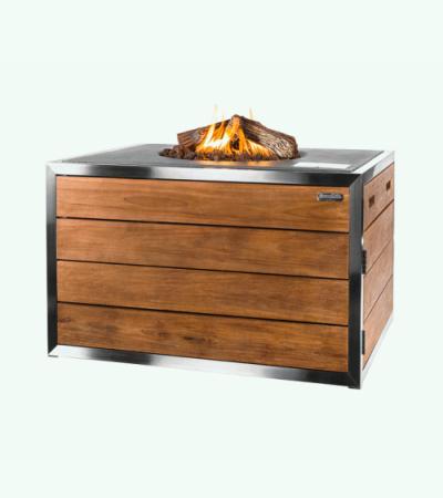 De Cocoon haard is vervaardigd uit duurzaam teakhout en afgewerkt met een antraciet bovenblad en RVS omlijsting voor nog meer uitstraling. Het materiaal teakhout is goud-bruine van kleur, heeft een lange levensduur en maar weinig tot geen onderhoud nodig. Teakhout kan bijna alle weersomstandigheden weerstaan waardoor u de vuurtafel het hele jaar door buiten kunt laten staan. Afdekken na gebruik en bescherming tegen weersinvloeden door middel van een beschermhoes wordt wel aangeraden.