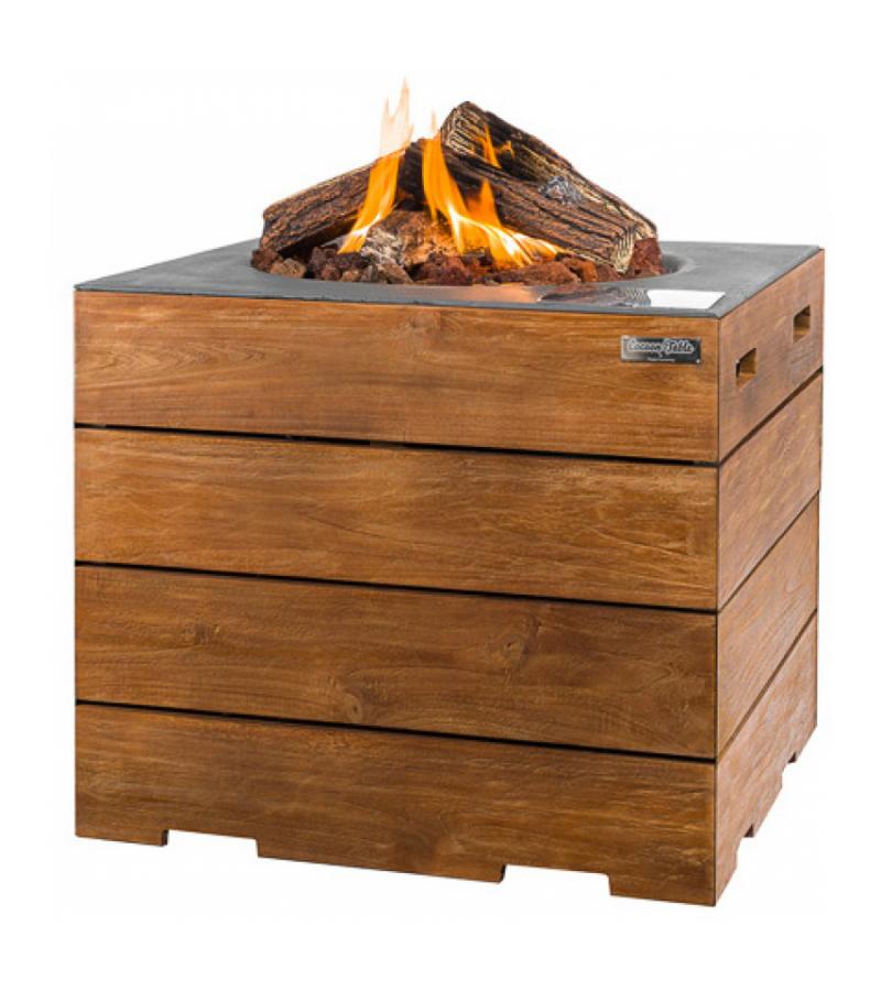 De Cocoon haard is vervaardigd uit duurzaam teakhout en afgewerkt met een antraciet bovenblad. Het materiaal teakhout is goud-bruine van kleur, heeft een lange levensduur en maar weinig tot geen onderhoud nodig. Teakhout kan bijna alle weersomstandigheden weerstaan waardoor u de vuurtafel het hele jaar door buiten kunt laten staan. Afdekken na gebruik en bescherming tegen weersinvloeden door middel van een beschermhoes wordt wel aangeraden.