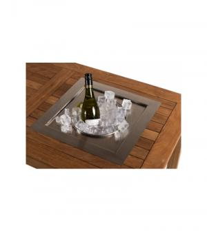 De losse Cocoon inbouw wijnkoeler is een RVS ijsemmer en geschikt om in een bestaande tuintafel in te bouwen. U hoeft alleen een gat van 31 x 31 cm uit uw tafel te (laten) zagen en u kunt de koeler erin laten zakken. Het is natuurlijk wel een klusje maar gelukkig wordt de inbouw wijnkoeler geleverd met een mal zodat u het gat er uit kunt zagen met de juiste afmetingen.