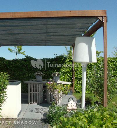 De pergola’s met harmonicadoek van 370 cm breed worden geleverd met een houtpakket van 12 cm dikke palen. Bij de overige afmetingen zijn de palen 9 cm dik. De pergola’s met een harmonicadoek van 5 meter lang (Model B) hebben een extra staander ter ondersteuning. De liggers bestaan dan uit 2 palen van 250 cm en worden met elkaar verbonden middels de bijgeleverde Pergola Kit Verlenging elementen.