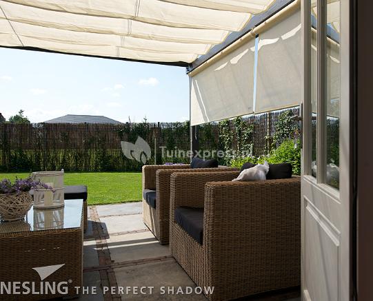 Naast schaduwdoeken komt Nesling ook met dé oplossing voor de laagstaande ochtend- en avondzon. Het Coolfit rolgordijn gebroken wit zorgt voor een perfecte zonwering waardoor u ieder moment van de dag van de buitenlucht kunt genieten. Het Coolfit rolgordijn is gemaakt van zeer sterk en geknoopt HDPE en staat hierdoor garant voor een lange levensduur. Door dit materiaal is het doek schimmelwerend en eenvoudig te reinigen. Naast de decoratieve functie die het rolgordijn heeft, is het ook een prachtige aanwinst voor het terras. Door de strakke afwerking en het moderne design staat het rolgordijn mooi op ieder terras.