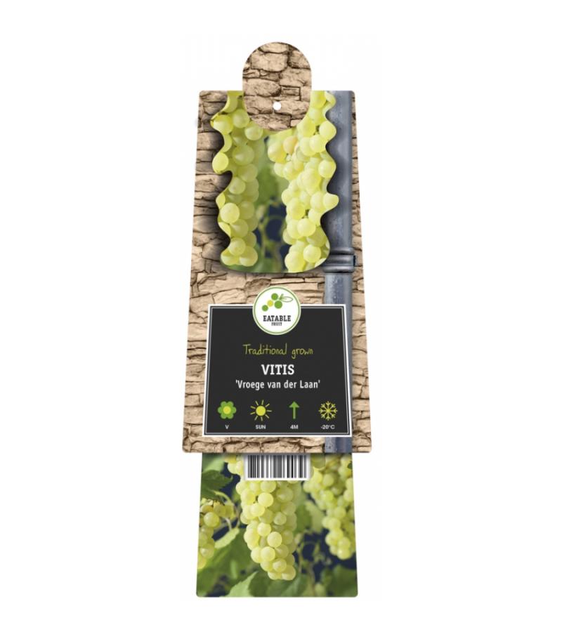 Deze witte druif is ideaal voor druiventeelt in ons klimaat. Waar de meeste druiven enkel geschikt zijn voor groei in kassen, is deze zeer geschikt om in de buitenlucht te groeien. Met een plaatsje op het zuiden zodat hij veel zon vangt, zal de druif u belonen met een fijne oogst. Geef een druif altijd klimondersteuning door middel van een klimrek of gespannen draad. De heerlijk zoete, sappige druiven zijn te oogsten vanaf september.