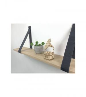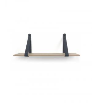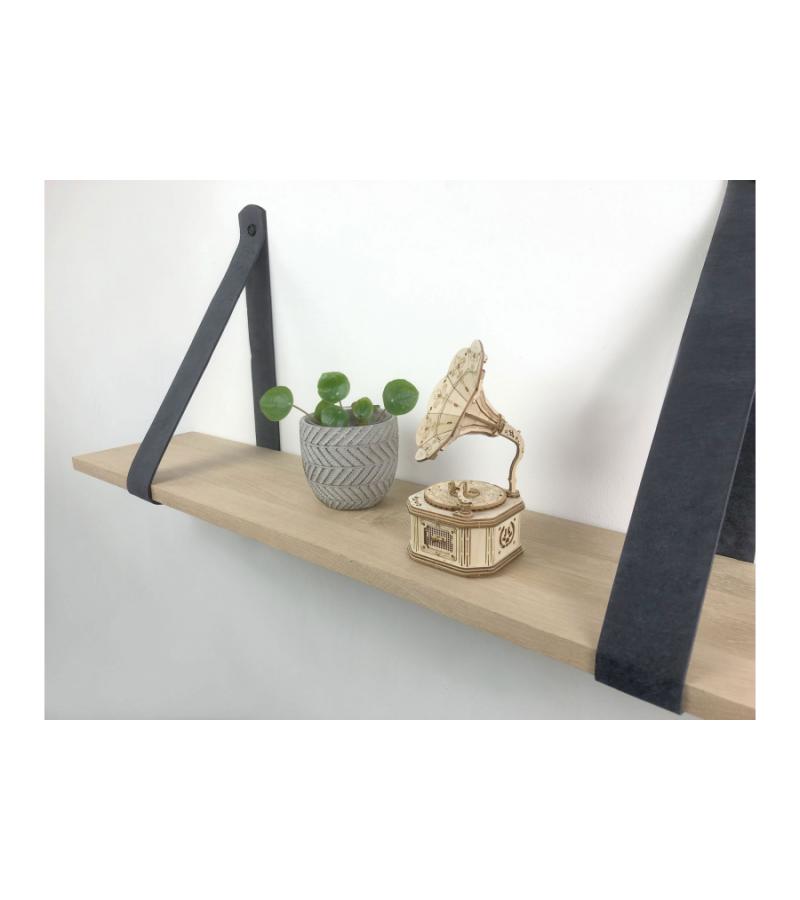 Eiken 18mm wandplank recht 150 x 30 cm inclusief leren riemen grijs