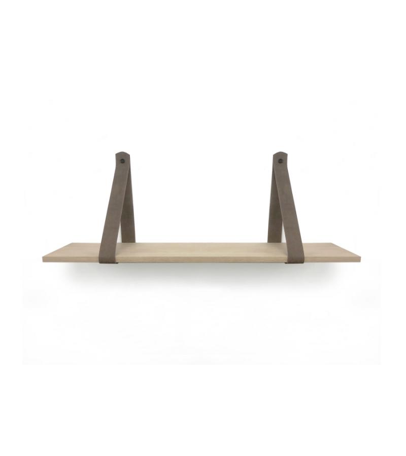 Eiken 18mm wandplank recht 75 x 20 cm inclusief leren riemen bruin
