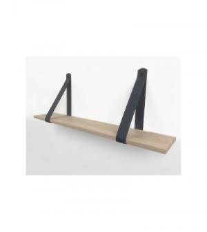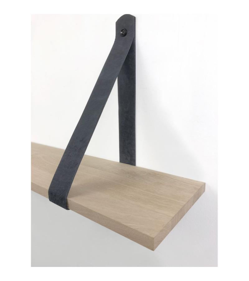 Eiken 18mm wandplank recht 75 x 30 cm inclusief leren riemen grijs