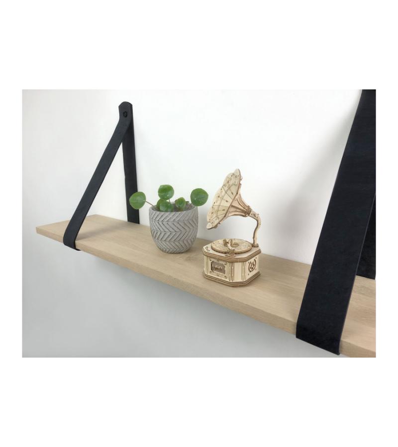 Eiken 18mm wandplank recht 80 x 20 cm inclusief leren riemen zwart