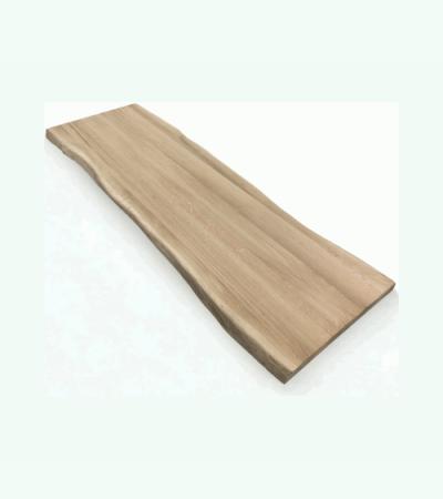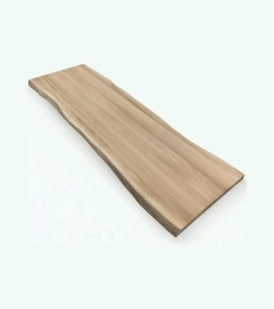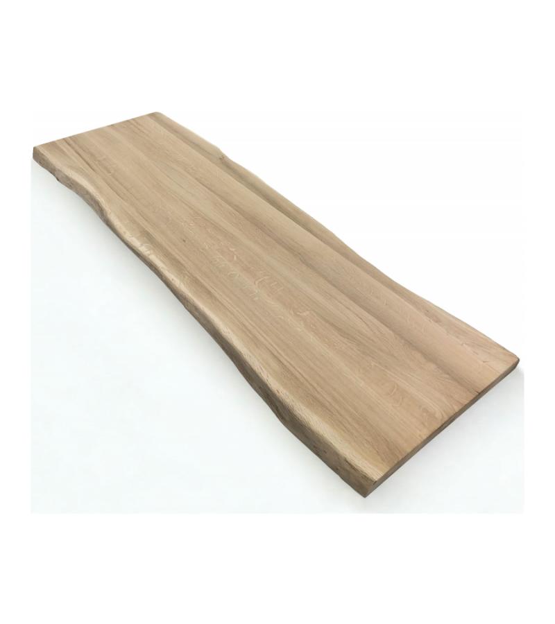 Deze gladgeschuurde massief eikenhouten plank is als een boomstam, dat wil zeggen, de lange zijkanten van de plank zijn niet recht en hebben het motief van de originele boom. De korte kanten zijn wel recht afgewerkt.