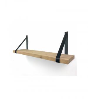 Eiken wandplank massief recht 60 x 30 cm inclusief leren riemen zwart
