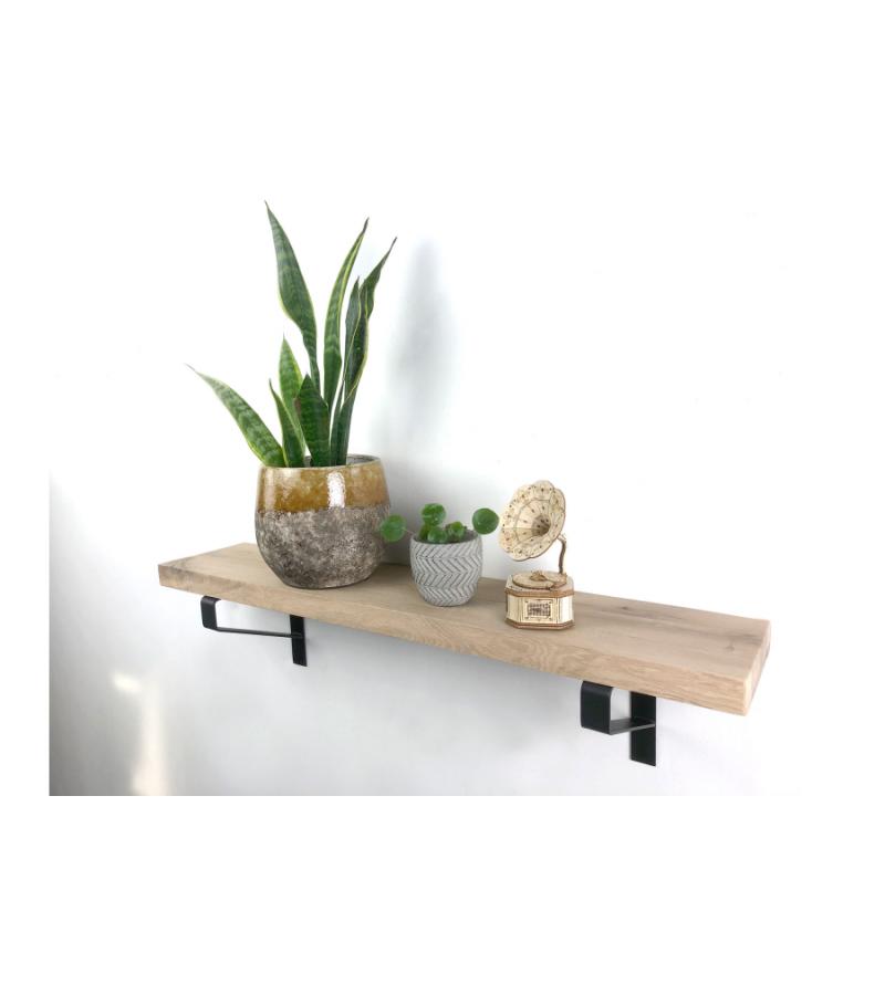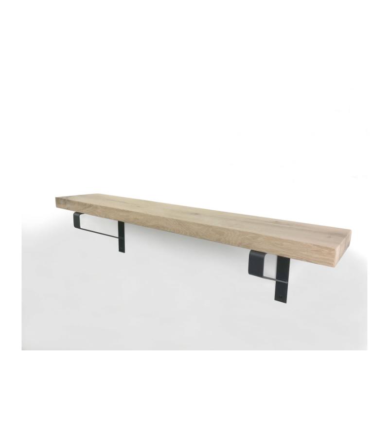 Eiken wandplank massief recht 80 cm op 30 cm diepe plankdragers