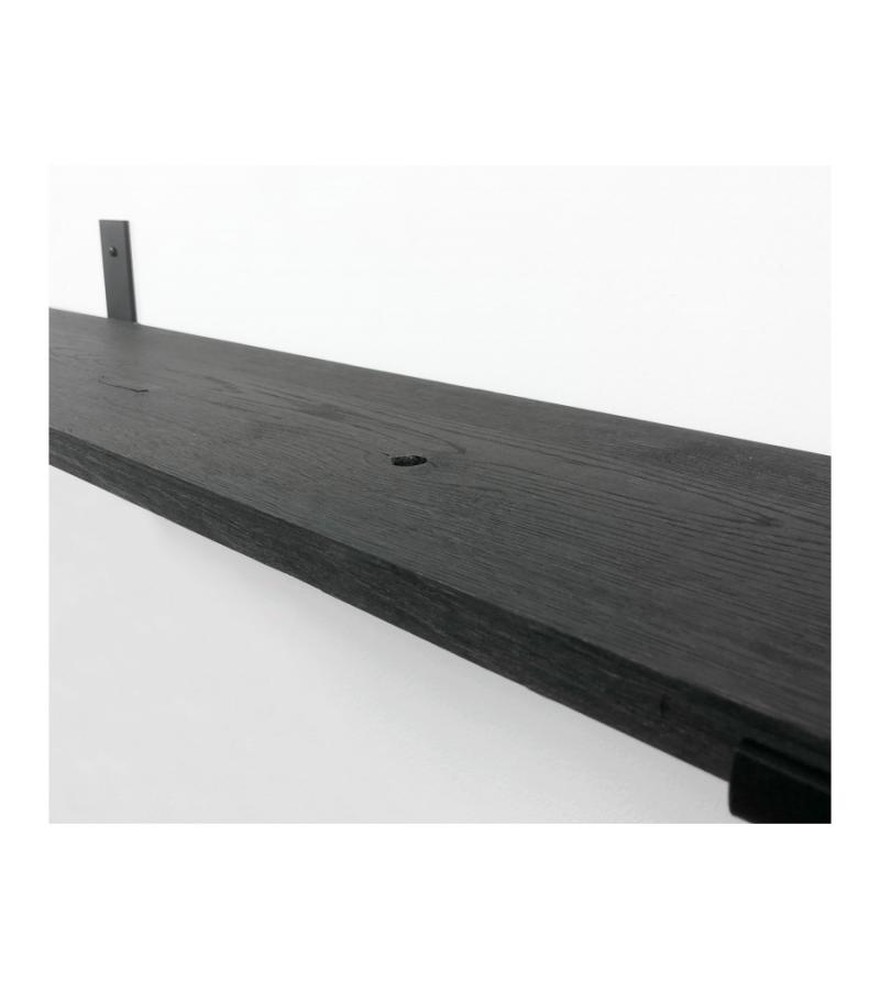 Eiken wandplank zwart 125 x 20 cm met industriele plankdragers