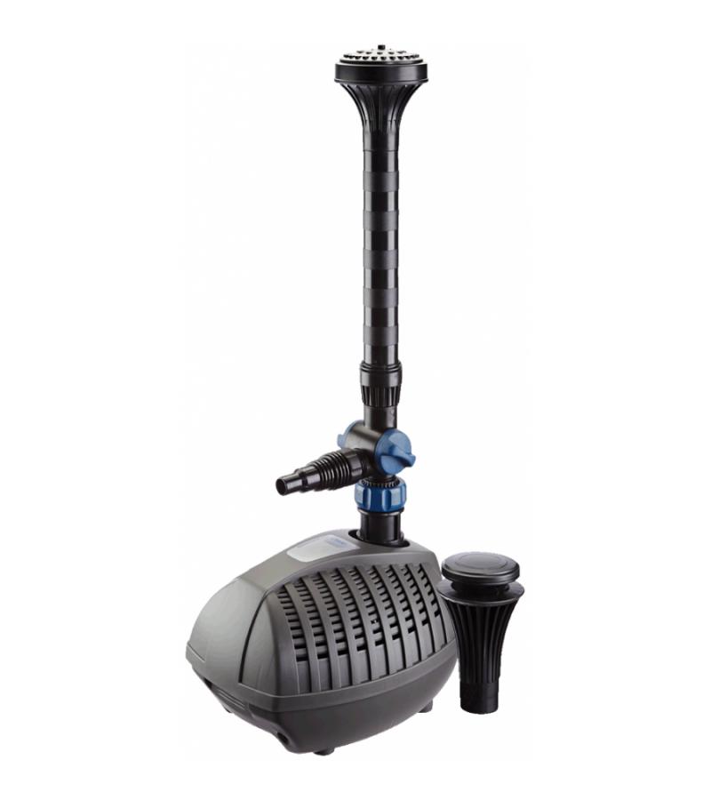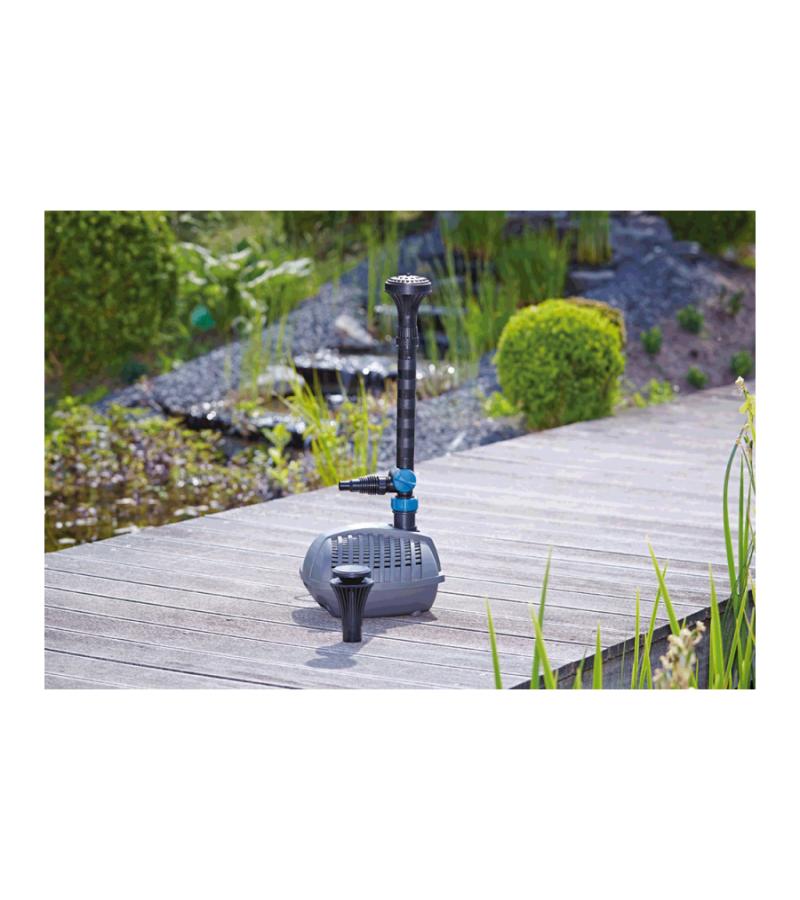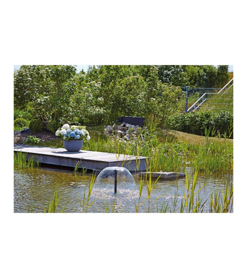 De sterke Aquarius Fountain Set Eco met energiezuinige aandrijving is verkrijgbaar in drie verschillende uitvoeringen. De fonteinpomp wordt geleverd in een complete set voor een snelle installatie en comfortabele bediening. Dankzij de telescopische sproeikop verlenging en een zwenkkop kan de fontein op ieder gewenste positie vastgezet worden. De fontein is voorzien van een tweede, apart regelbare uitgang. Hier kunt u eventueel een kleine beekloop of een spuitfiguur op aan sluiten. Voor blijvende gelijkmatige sproeibeelden is de adapter voorzien van een rvs zeef met een fijnfilter. Dankzij de Environmental Function Control (EFC) schakelt de pomp bij drooglopen of blokkeren automatisch uit en wordt schade aan het apparaat voorkomen.