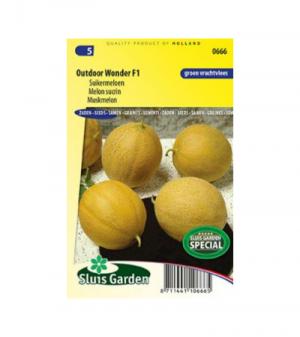 Deze suikermeloen zaden produceren kleine vruchten met lichtgroen vruchtvlees en een gewicht van 300 gram per stuk. De suikermeloen 'Outdoor Wonder'  is geschikt voor de vroege oogst en houdt van erg veel warmte. U kunt deze typische suikermeloen in de kas of goed beschut buiten telen en is geschikt voor zowel vlakteelt in de kas als aan draad. Voor het beste resultaat zaait u per twee zaden in een pot van 12 cm, plant u het uit in de kas, topt u de plant na 4 echte bladeren en snoeit u de hoofdranken later op 60-70 cm. Voor een goede vruchtzetting kunt u handmatig de bloemen bestuiven en ervoor zorgen dat insecten zoals bijen bij de vruchten kunnen komen.