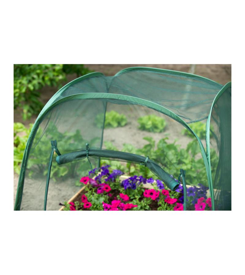 De pop-upkas bestaat uit een stalen frame met een ''pop-up''-opzetsysteem. De hoes bestaat uit een anti-insectennet en is gemaakt van polyester. Het anti-insectennet is voorzien van mazen van 1 x 1 mm en heeft een dichtheid van 55 g/m². Zo worden uw groentes goed beschermd tegen ongedierte en zorgen de gaatjes tevens voor een optimale beluchting. De pop-upkas is erg fijn en gemakkelijk in gebruik. Wanneer u de kas niet wilt gebruiken, kunt u hem eenvoudig opruimen en zal hij weinig plaats innemen in uw berging.