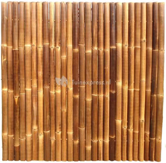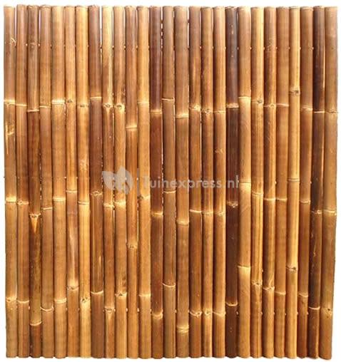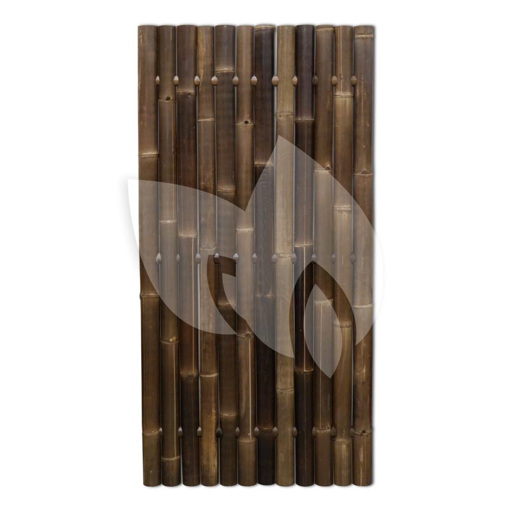 Bamboe schutting met een natuurlijk zwarte kleur. Doordat de schutting op meerdere plaatsen met smallere bamboestammen aan elkaar bevestigd is, is het zeer stabiel en (indien gewenst) gemakkelijk op maat te zagen. Gemaakt van hoogwaardige bamboestengels. Dikte van de bamboestokken bedraagt 60 / 80 mm. De bamboe schutting is standaard afgewerkt met een blanke lak waardoor ze direct beschermd zijn en zonder verdere bewerking geschikt zijn voor buitengebruik.