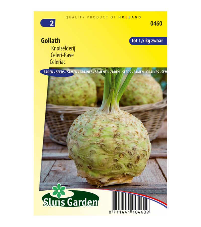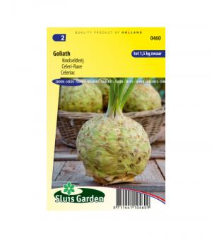 De Knolselderij is een variant van de selderijplant en vormt net boven de grond een knol. De knol is bruingeel van kleur en heeft licht vruchtvlees met een milde, kruidige smaak. Deze Goliath is een verbeterde versie van de oude Prager Reuzen. De Goliath is beter resistent, beter bestand tegen ''schieten'' en gemakkelijker schoon te maken. Bij voorkeur kunt u vanaf maart beginnen met het voorzaaien onder glas. Na opkomst de plantjes verspenen, even laten afharden en in mei kunt u ze buiten uitplanten op een vochthoudende grond. U kunt er ook voor kiezen om vanaf mei buiten te zaaien, te verspenen en uitplanten. De oogstijd is van september tot en met november waarbij u erop moet letten dat u de knolselderij oogst voordat de vorst invalt. De geoogste knollen kunt u op een koele plek lang bewaren.