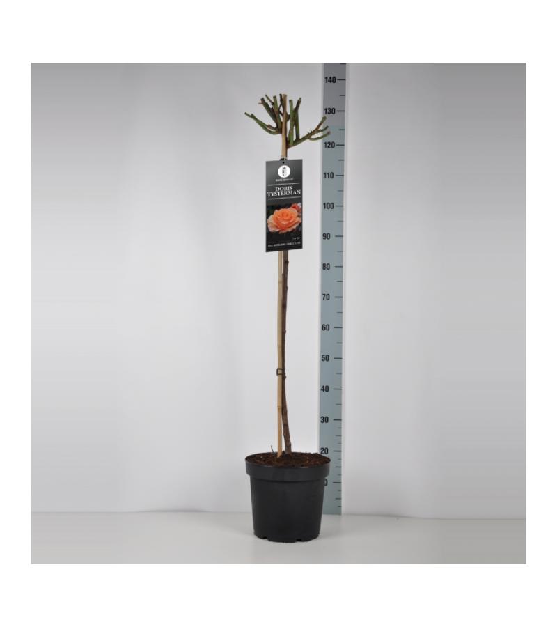 Met zijn weelderige oranje bloemen is stamroos Doris Tijsterman een absolute aanwinst in uw tuin. Deze grootbloemige roos, ofwel theehybride heeft klassieke kenmerken zoals een mooie volle  bloem als een heerlijke lichte geur. De rozen zijn ook perfect te gebruiken als snijrozen. Een stamroos staat prachtig als solitair maar zeker ook in groepsverband wat een prachtig effect geeft.