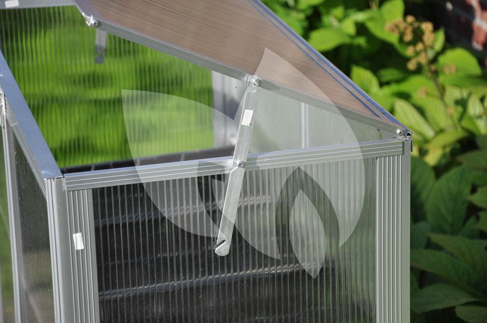 De Grow Station kweekkas is uitermate geschikt voor het (voor)zaaien en (op)kweken van jonge gewassen. Het 4 mm dikke polycarbonaat heeft een isolerende werking en zorgt voor diffuus groeilicht. De kweekkas is voorzien van een dichte achterwand, twee draaideuren en een klep voor de nodige beluchting. Via de twee draaideuren kunt u altijd gemakkelijk bij uw gewassen komen en ook kunnen de draaideuren gebruikt worden als extra ventilatiemiddel. De klep is in te stellen op verschillende standen zodat er frisse lucht bij uw plantjes kan komen. Vooral in de zomermaanden, wanneer de temperatuur hoog oploopt in de kas, is het belangrijk dat er voldoende frisse lucht de kas in komt. Bovendien is de beluchting zeer belangrijk om de luchtvochtigheid op pijl te houden.