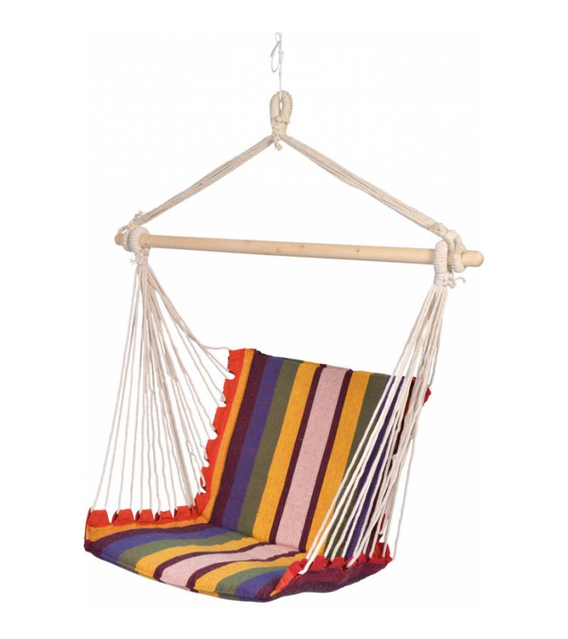 Geniet optimaal van de heerlijke zomerdagen in deze comfortabele en kleurrijke hangmatstoel regenboog!