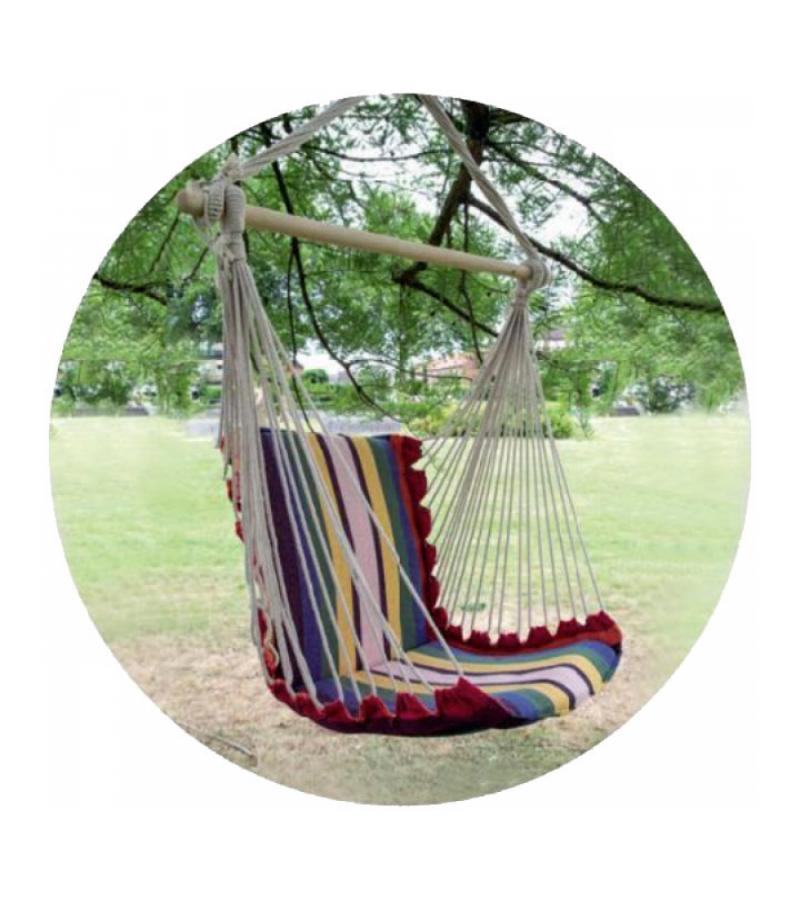 De hangmatstoel is gemaakt van 65% katoen en 35% polyester en biedt het ultieme comfort. De stoel is ideaal om een boek te lezen, een dutje te doen of gewoon even in te schommelen. De stoel beschikt over diverse koorden aan beide zijden waardoor het gewicht goed verdeeld wordt over de stoel, hierdoor kan de stoel een gewicht tot wel 120 kg dragen.