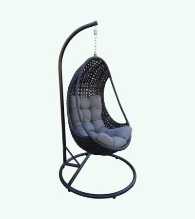De aluminium stoel is voorzien van een zwart wicker vlechtwerk en hangt u eenvoudig op in bijbehorend metalen frame. Het frame is afgewerkt met een poedercoating wat ervoor zorgt dat de stoel zowel binnen- als buitenshuis gebruikt kan worden. Het kussen dient u na gebruik wel altijd binnen op te bergen om vochtschade te voorkomen.