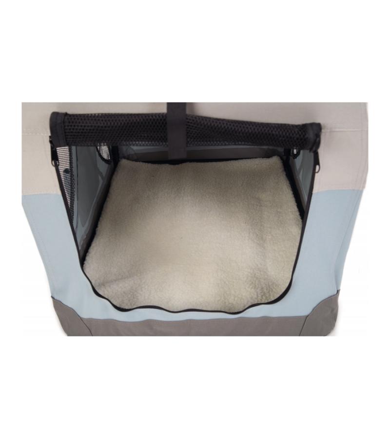 De Beeztees Travel Time bench is een zeer handige en opvouwbare nylon bench. Deze bench kan worden opgezet en af worden gebroken in een paar seconde. Zodra de bench is ingeklapt, kun je deze in de reistas stoppen, zodat je de bench gemakkelijk mee kunt nemen. De bench heeft aan de bovenkant twee handvaten, zodat je de bench gemakkelijk mee kunt dragen. Verder bevat de bench voldoende ventilatie en heeft het een opbergvak, om jouw waardevolle spullen in te bewaren. De bench is inclusief een mat gemaakt van schapenvacht. Al met al, een multifunctionele bench om jouw huisdier veilig in te vervoeren. - Gemaakt van nylon - Voorzien van ventilatiegaten, handvaten en een opbergvak - Inclusief een mat van schapenvacht en een handige draagtas - Verkrijgbaar in 2 kleuren en 5 maten Afmetingen: - 49x34x35 cm - 60x42x42 cm - 70x52x52 cm - 81x58x58 cm - 91x63x63 cm - 102x69x69 cm
