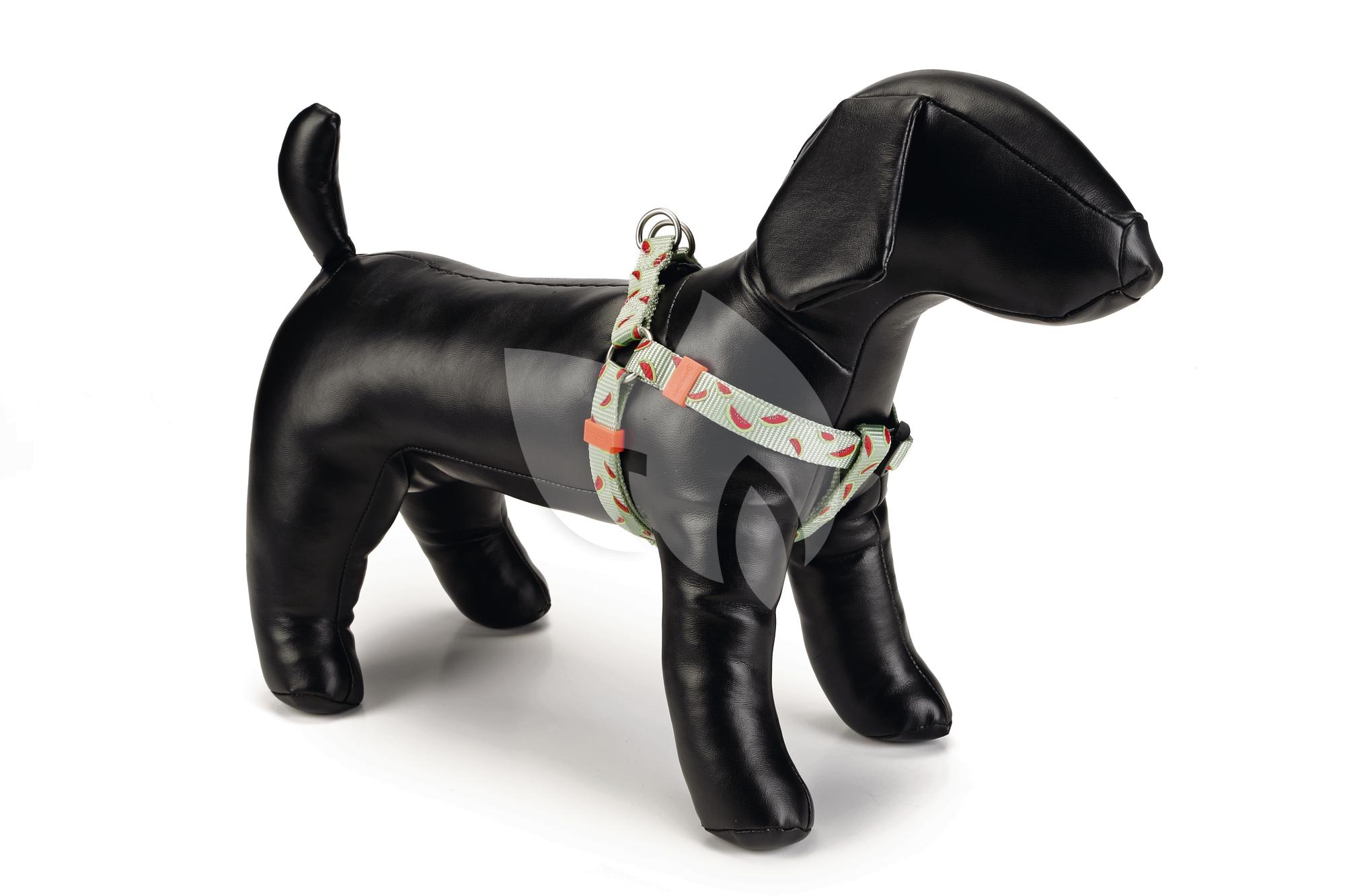Beeztees nylon borsttuig Melon. Dit handige verstelbare borsttuig is makkelijk bij uw hond om te doen. Voorzien van enkele rubberen gespjes om het nylon op de plaatsen waar het dubbel is, bij elkaar te houden. Deze rubberen gespjes zijn in een felle kleur, zodat het geheel een fraai uiterlijk geeft. Model: instap. Met kliksluiting. Dit borsttuig is te combineren met diverse Beeztees nylon looplijnen. Kleur: Lichtgroen. Afmeting: 60-100 cm x 25 mm.