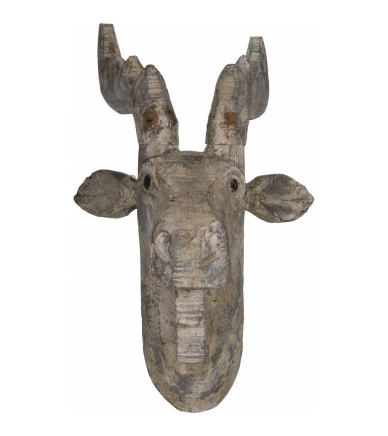 Houten beeld rendier 30x19x26 cm muurdecoratie