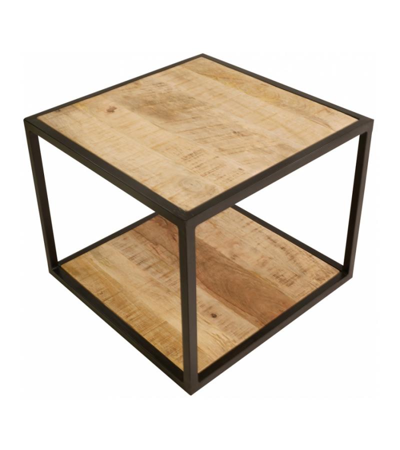 Jack bijzettafel mangohout met stalen frame 50x50x40 cm