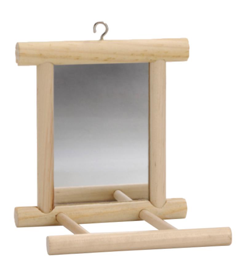 Deze houten landsiegel is een leuke aanwinst voor in de vogelkooi. Een spiegel met aan de voorzijde een landgedeelte voor uw vogel. Voorzien van een metalen ophanghaak aan de bovenzijde.