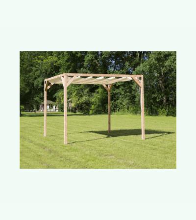 Vrijstaande pergola hout 3.7x5 meter met gebroken wit harmonicadoek