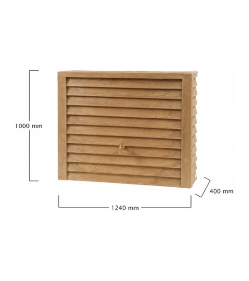 De stijlvolle regenton Woody is gemaakt van kunststof met een realistisch lichtbruin houtstructuur. De regenton heeft een inhoud van maar liefst 350 liter, is aan beide zijkanten voorzien van tapopeningen en is vorst- en weersbestendig. Het opgevangen regenwater kunt u doormiddel van de bijgeleverde messing kraan eenvoudig uit de regenton tappen. De Woody regenton is ook verkrijgbaar in de kleur donkerbruin.