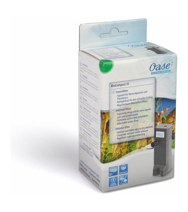 Een filter is het belangrijkste hulpmiddel in uw aquarium als het gaat om schoon water. Een aquarium filter zorgt voor langdurig doorzichtig en helder water, maar ook voor optimale leefomstandigheden voor alle aquariumbewoners. Het BioCompact aquarium binnenfilter 25 is geschikt voor nano-aquariums met een inhoud tot 25 liter met een kleine dierenpopulatie.