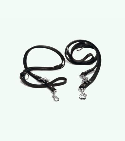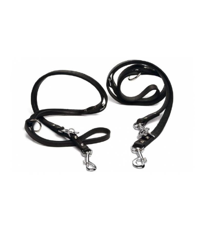 Een lederen dressuurlijn waarmee u uw hond kunt trainen, doordat deze riem verstelbaar is in verschillende maten. Zo kunt u de hond kort houden, alsmede wat meer vrijheid geven.