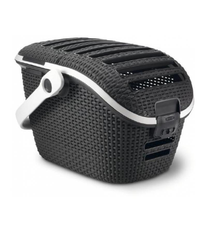 Een schitterend uitziende reismand van het merk Curver. Deze reismand met bovenlader is van het oersterke materiaal Rattan, gemaakt van een hoogwaardig gevlochten kunststof. Voorzien van een draagarm, welke u ook makkelijk kunt vastzetten in de autogordel als u met uw kleine huisdier naar bijvoorbeeld de dierenarts moet. Kleur: antraciet met een lichtgrijze draagarm en bies rondom.