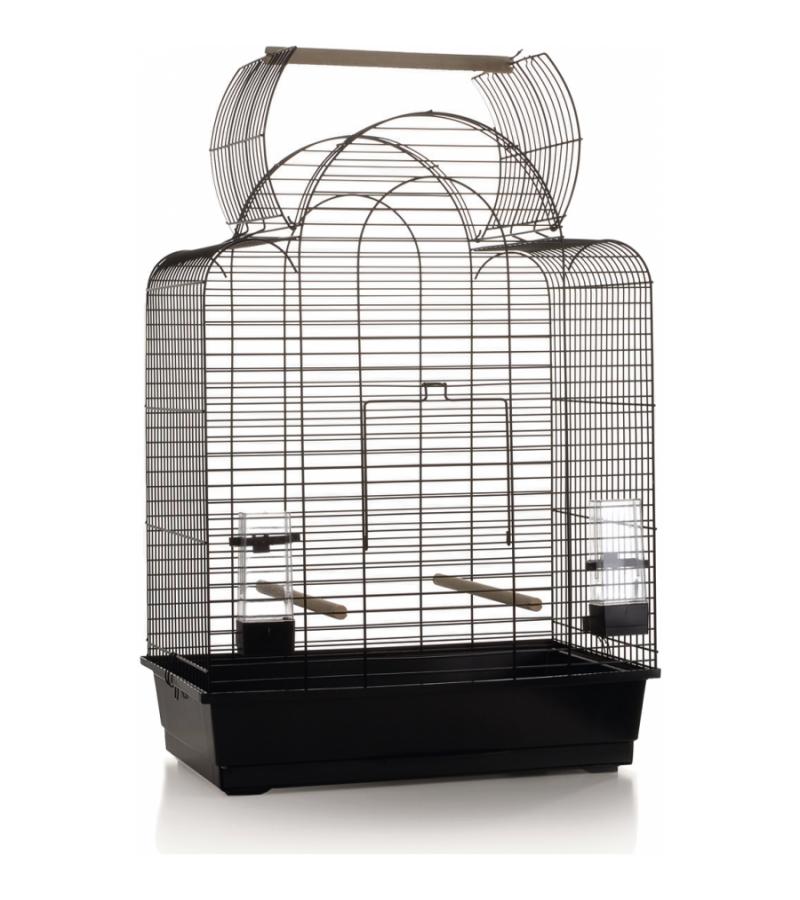 Vogelkooi Big Sonia, open model, is een leuke vormgegeven vogelkooi, welke makkelijk is schoon te maken door de uitschuifbare lade. Tevens kan het dak worden opengezet om zo een vrije zitplaats voor uw vogel te creeren. Inclusief zitstokjes en drink en voederbakjes. Te combineren met de metalen vogelkooistandaard Bob 3 en Jason. Kleur: zwart.